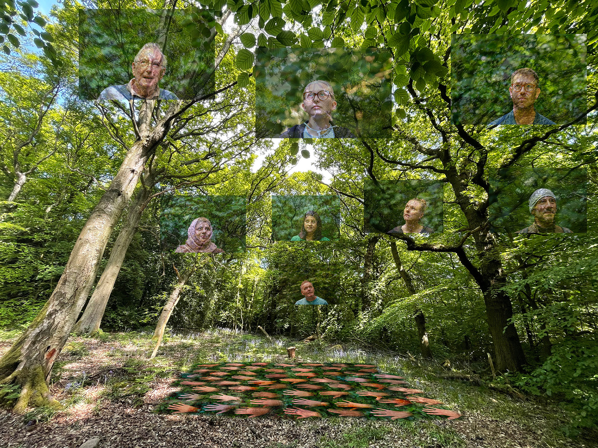 Visualisations showing examples of how the work could be exhibited within woodland.